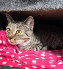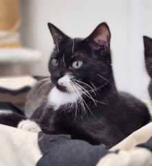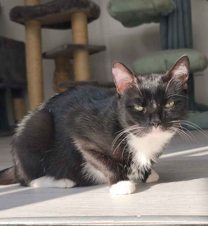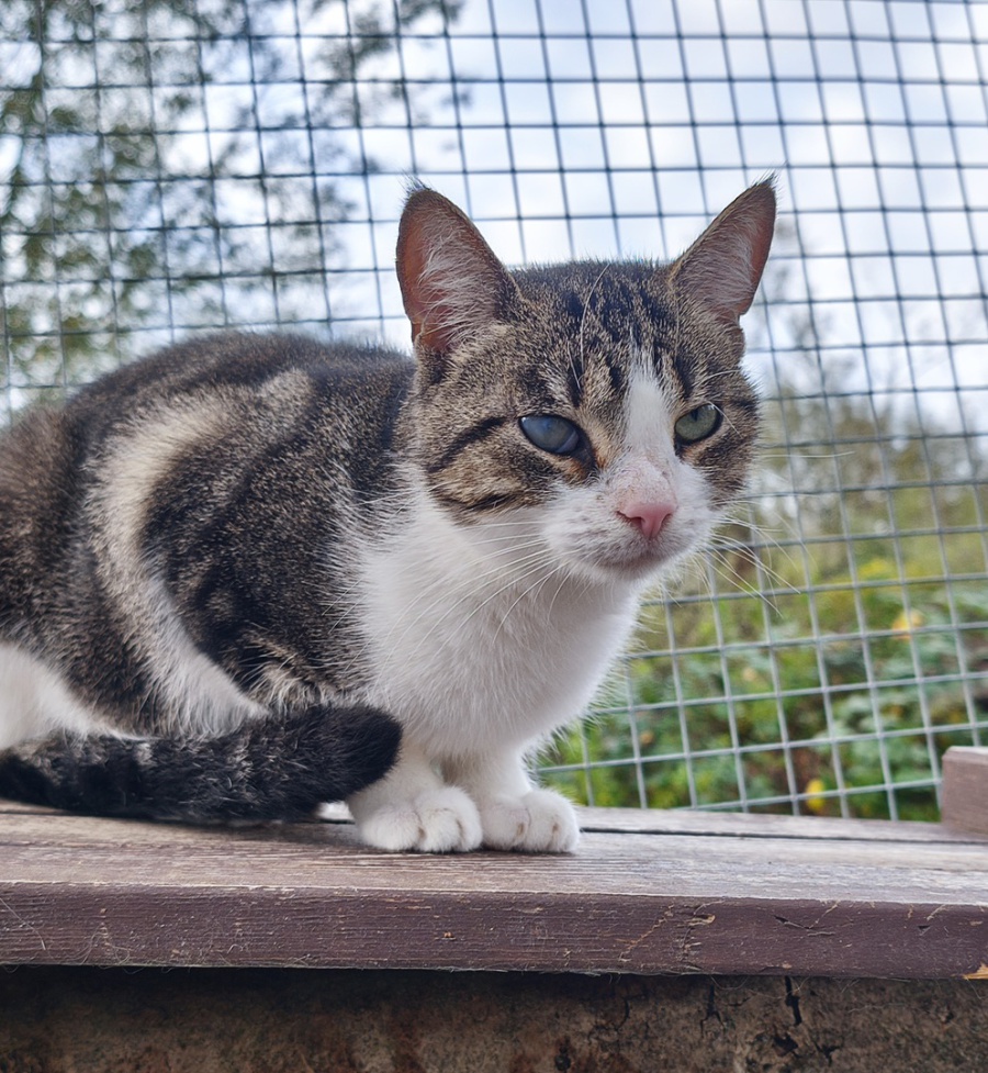 Nagini hat ein trübes Auge und ist dadurch in der Sicht eingeschränkt. Davon lässt sie sich jedoch z. B. beim Klettern nicht einschränken. Nagini kann zu einer ähnlich alten, vorhandenen Katze oder mit einer ihr bekannten Katze ausziehen. Keine Vermittlung in Einzelhaltung. |