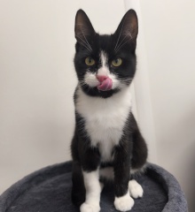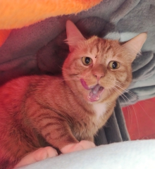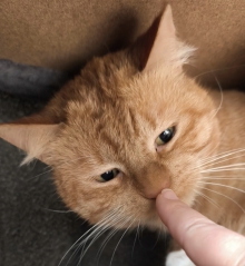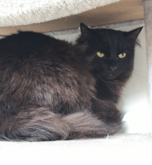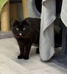 Satan sucht ein katzenerfahrenes Zuhause ohne kleinere Kinder. Mit anderen Katzen ist er verträglich. Diese vermitteln ihm Sicherheit und er konnte bereits Leckerchen annehmen.