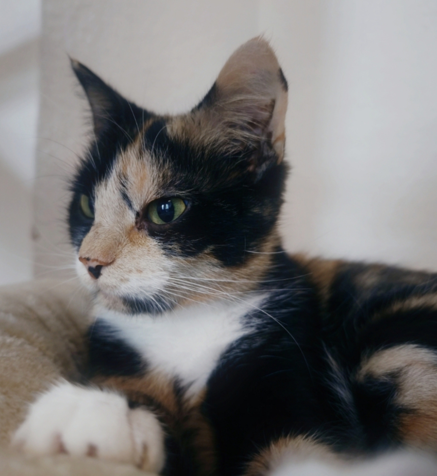 Bellatrix ist eine junge Katze, der man ihre Angst ansieht. Sie möchte mit Menschen noch keinen Kontakt aufnehmen, mit Artgenossen ist sie gut verträglich. Wir wünschen uns für Bellatrix einen Haushalt ohne Kinder, bei geduldigen und erfahrenen Katzen-Menschen, welche Bellatrix die Zeit geben, die sie benötigt.