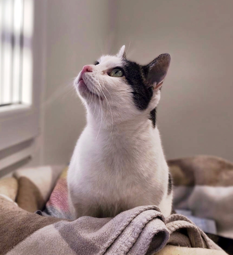 Sun ist eine neugierige Katze, welche sofort alle Besucher begrüßen muss. Sie kuschelt mit Bezugspersonen und liegt gerne erhöht, um alles im Blick zu haben. Kleinere Kinder sollten nicht im neuen Haushalt leben. Sie sucht gemeinsam mit Katze Tessa ein Zuhause. |